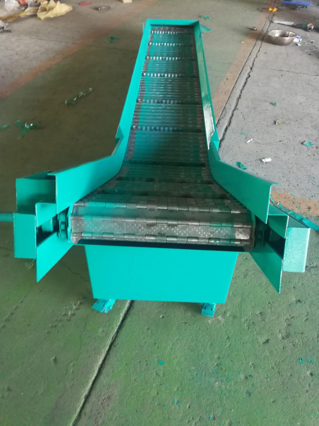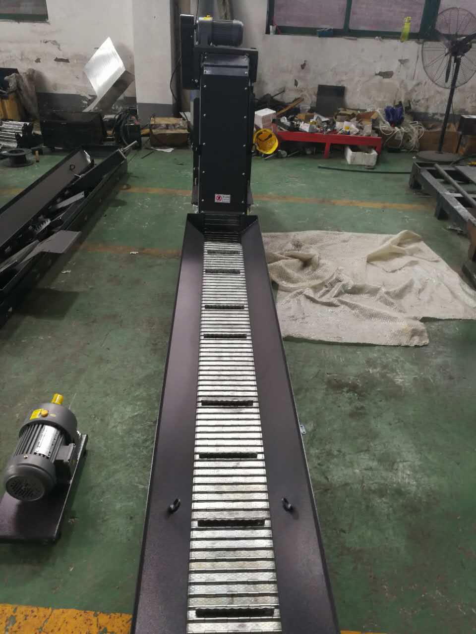 4、我公司生產的鏈板排屑機廣泛應用于車床、鉆床、龍門銑床、鏜床、加工中心及其他專用機床,操作簡單、運行可靠、拆裝方便、維修容易。亦可與其它排屑裝置聯合使用,形成各種形式排列的切削處理系統。排屑長度可達40米。