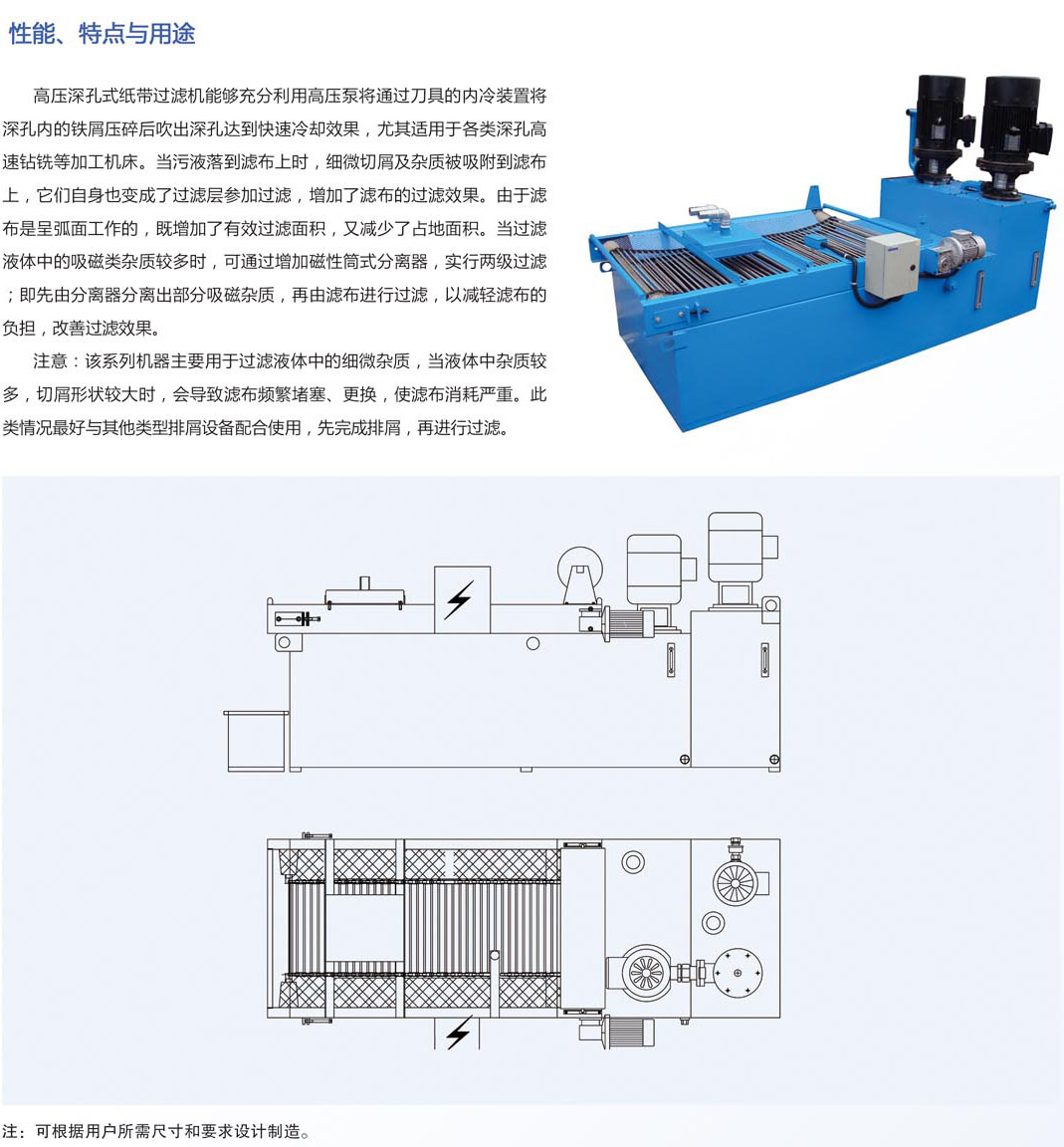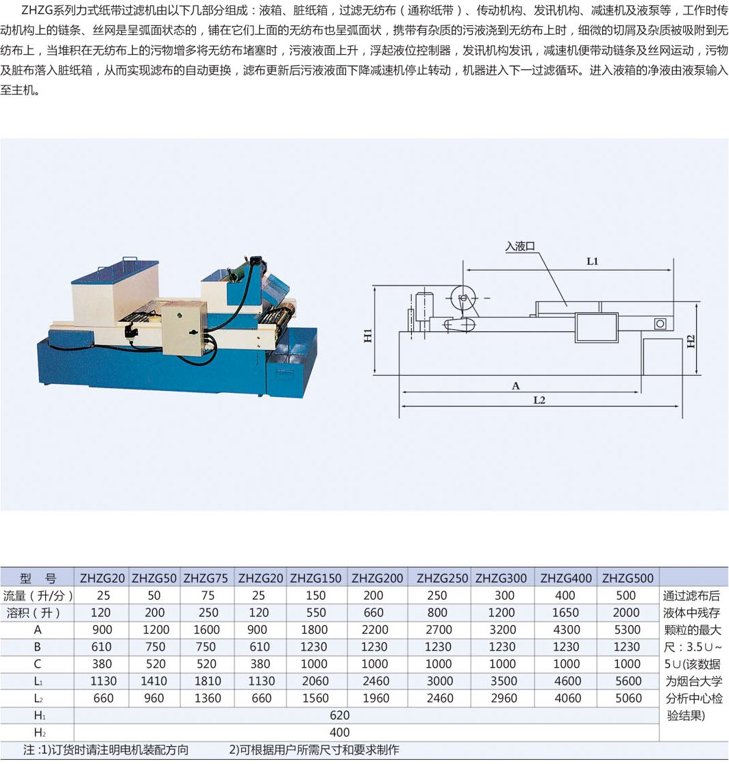 2,強(qiáng)迫式紙帶過(guò)濾機(jī),負(fù)壓紙帶過(guò)濾機(jī)、正壓式紙帶過(guò)濾機(jī)、霍夫曼紙帶過(guò)濾機(jī)等系列,這種過(guò)濾機(jī)能夠做到5000L/min的的流量,過(guò)濾精度10微米,全自動(dòng)過(guò)濾,含沖刷、除油、增氧系統(tǒng),這種過(guò)濾形式為近幾年發(fā)展的趨勢(shì),例如負(fù)壓式綜合過(guò)濾系統(tǒng),包含刮屑系統(tǒng)、過(guò)濾系統(tǒng)、磁分離系統(tǒng)、增氧系統(tǒng)、除油系統(tǒng)、收紙系統(tǒng)、電器控制系統(tǒng)等組成。